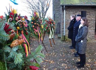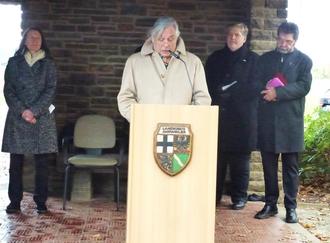 KREIS AHRWEILER. DG. Wie jedes Jahr findet am Bad Bodendorfer Soldatenfriedhof die zentrale Gedenkfeier des Kreises Ahrweiler statt. Unter dem diesjährigen Leitmotiv „Vergiss nicht“ eröffnete nach einem Intro des Bad Neuenahrer Posaunenchors Landrätin Cornelia Weigand die Veranstaltung. Ihr besonderer Dank galt allen, die sich für den Friedhof und die Gedenkstunde engagieren. Mehr als 1.200 Soldaten liegen hier begraben, Soldaten, die in den letzten Kriegswochen in den Rheinwiesenlagern gestorben sind. Weigand mahnte das Gedenken an alle Toten der beiden großen Weltkriege und die Opfer von Kriegen bis in die heutige Zeit an. Spätestens nach Ende des kalten Krieges begann eine vermeintlich friedliche Zeit, die Situation ist aber heute deutlich verändert. Die Klimakrise mit ihren verheerenden Folgen und weitere kriegerische Auseinandersetzungen wie der russische Angriffskrieg in der Ukraine oder die Situation im Nahen Osten machen uns bewusst, dass ein Leben in Sicherheit nicht selbstverständlich ist. „Mit großer Sorge blicken wir auf die Bedrohungen von Frieden, Freiheit und Demokratie. Geschürt von Misstönen, von denen wir bis vor Kurzem dachten, dass sie nicht mehr Teil unseres Wortschatzes und vor allem der Gedanken seien.“ Vergiss nicht! Der Volkstrauertag mahnt, nicht die Fehler der Vergangenheit zu wiederholen. Ihr besonderer Gruß galt dem Hauptredner des Tages, Christian Pfeil, der sich als Überlebender des Holocaust seit vielen Jahren für die Aufarbeitung der Geschichte einsetzt und hierbei ganz besonders auch junge Menschen anspricht. Pfeil ist deutscher Sinto und wurde im Winter 1943/44 im Ghetto Lublin geboren, das genaue Datum ist ihm nicht bekannt. Seine Mutter nahm ihn, nur notdürftig eingewickelt, mit in die Kälte zur Zwangsarbeit. Gerade dies sicherte ihm aber sein Überleben, da die in den Baracken zurückgelassenen weinenden Kleinkinder oft einfach umgebracht wurden. Pfeil erzählte detailliert den Leidensweg seiner Familie, die bereits im Mai 1940 deportiert wurde. Während nahe Verwandte im Vernichtungslager Auschwitz ermordet wurden, hat seine Familie überlebt, „Gott und die Mutter Gottes waren mit uns.“ Aber auch nach dem Krieg wurden Sinti und Roma ausgegrenzt und erniedrigt. Das setzte sich für ihn auch in der Schule fort, wo er als Zigeunerjunge beschimpft wurde. Zwischenzeitlich war Pfeil als Gastwirt und später auch als Sänger politischer Lieder erfolgreich tätig. Nach einer Dokumentation über ihn im Fernsehen wurde er aber massiv angefeindet bis hin zu Morddrohungen, und gleich zweimal wurde sein Lokal in Trier verwüstet. Seit der Einweihung des Mahnmals für Sinti und Roma in Trier engagiert er sich gegen Antisemitismus und Antiziganismus. Anfang des Jahres konnte er anlässlich des internationalen Holocaust-Gedenktages sogar vor den Vereinten Nationen sprechen. „Das Vermächtnis der Opfer von Auschwitz ist eine Verpflichtung und Verantwortung aller Nationen.“ Mit großer Sorge schaut er auf die auch bei uns zunehmenden rechtsradikalen Tendenzen und „ruft vor allem junge Menschen weltweit auf, die Erinnerung von Zeitzeugen und das Gedenken in die Zukunft zu tragen.“ Pastor Frank Werner appellierte, gegen jegliches Unrecht einzutreten. Und Pfarrerin Kerstin Laubmann mahnte noch einmal das Erinnern an. Vertreter der Bundeswehr, Landrätin Weigand und ein Vertreter des VdK legten offiziell Kränze nieder. Der Posaunenchor intonierte zwischenzeitlich noch einige Stücke, ebenso wie die Chorgemeinschaft Bad Bodendorf-Sinzig-Westum einige besinnliche Lieder anstimmte. Sicher, der Volkstrauertag ist ein trauriger Anlass. Er kann aber helfen, die Erinnerung an die Grauen und Gräueltaten der Vergangenheit wachzuhalten und -hoffentlich- auch ein wenig dazu beitragen, dass so etwas nicht wieder geschieht.