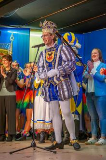 SINZIG. DG. Das war ein überaus gelungener Sessions-Start am vergangenen Samstag, als die blau-gelben Formationen mit viel Tamtam im altehrwürdigen Helenensaal die fünfte Jahreszeit einläuteten. Die Närrischen Buben hatten wieder ein abwechslungsreiches Programm zusammengestellt, bei dem jeder auf seine Kosten kam. Auch aus den Nachbargemeinden hatten einige karnevalistische Abordnungen den Weg nach Sinzig gefunden. Nach Begrüßung und Kadettentanz ein erster Höhepunkt: Die noch amtierende Sentiaca Carmen I. eroberte mit großem Gefolge die Bühne. Ein wenig Wehmut klang bei ihrer Abschiedsrede schon durch, denn sie war immer mit ganzem Herzen und vollem Einsatz dabei. Aber sie bleibt dem Sinziger Fastelovend als aktives Mitglied ja auch weiterhin erhalten. Das Programm hielt einige Leckerbissen bereit. „Die Erdnuss“ brachte mit seinem engagierten Vortrag den Saal dann erstmals ordentlich zum Lachen. Nun gab es was fürs Auge: Die Heddesdorfer Husaren boten Showtanz vom Feinsten. Mit einem schmissigen Gardetanz wartete dann die Oberwinterer Hafengarde auf. Nach der Pause kitzelte „Ne Schwaadlappe“ wieder ordentlich die Lachmuskeln, ehe es wieder akrobatisch wurde: Die Meninas aus Westum zauberten ihr ganzes tänzerisches Können auf die Bühne. Und wer bisher immer noch nicht so richtig in Stimmung war, bei den kölsche Liedern der „Schäl Pänz“ musste bei jedem der Bann brechen. Auf einmal flogen Paradiesvögel über die Bühne, mit dem Motto „Jetzt wird´s bunt“ zeigte die Showtanzgruppe der Närrischen Buben noch einmal ihren flotten und anmutigen Tanz aus der letzten Session. Das weckte schon Vorfreude auf die neue Show, dieser Tanz wird aber erst bei der Prunksitzung vorgestellt. Blasmusik, diesmal aber nicht nur gemütliches humtata im Dreivierteltakt. Die Ahrtalente, eine Brassband aus Ahrweiler, heizte dem Publikum mit musikalischem Remmidemmi so richtig ein. Knapp vier Stunden war Sinzig ohne gekürten närrischen Herrscher. Jetzt war es aber so weit. Die KG, Obermöhn und Bürgermeister Andreas Geron, begleitet vom Spielmannszug Freiweg, bezogen Stellung auf der Bühne, um die neue Sinziger Tollität vorzustellen. Unter lautem Jubel wurde Alexander I. (Becker), „Rotweinbaron von Beckersweiler, aus dem Geschlecht derer von de Bonnjass“ als Prinz proklamiert. Nach Überreichen der prinzlichen Insignien richtete die neue Tollität erste launige Worte an sein Volk. Zum großen Finale knubbelte sich dann dat janze karnevalistische Schmölzje auf der hierfür eigentlich schon zu kleinen Bühne. Sitzungspräsident Robert Lohmer führte wortgewandt wie immer durch ein tolles Programm, das von den Rhein-Ahr-Spatzen wieder professionell musikalisch begleitet wurde. Da kann man nur noch sagen: Et wor widder schön, dreimol Senzich Alaaf.