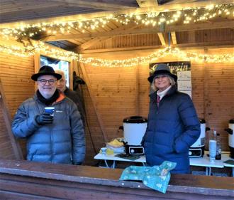 Sinzigs ehemalige Ortsvorstehende Kurt Quarz und Sylvia Mühl in ihrem Stand