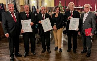 Vorsitzender Erwin Ritterrath konnte viele aktive Sänger und fördernde Mitglieder mit ihren Frauen begrüßen. Gemeinsam mit dem Vorsitzenden des Kreischorverbandes Ahrweiler, Günter Nerger, wurden Helmut Lembeck für 50 Jahre, Kurt Eulgem für 40 Jahre und Hermann Jungen für 25 Jahre aktives Singen geehrt. Zudem wurde Helmut Lembeck zum Ehrenmitglied ernannt.