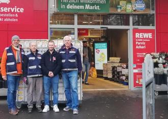 SINZIG. Der REWE-Markt Azhari beteiligte sich wieder an der bundesweiten REWE-Tüten-Aktion für die Tafeln. Viele Kunden hatten sich daran beteiligt und eine symbolische Tüte in Form einer kleinen Karte mit einem Strichcode in Höhe von fünf Euro gekauft. Die Warenmenge einer Tüte wurde der Tafel Ahrweiler gutgeschrieben. In jeder „Tüte“ befinden sich Lebensmittel, die aufgrund ihrer langen Haltbarkeit eher seltener gespendet werden: Nudeln, Gemüsekonserven, Haferflocken und Tomatenmark wurden zugunsten der Tafel erworben. Daniel Sell, stellvertretender Marktleiter vom REWE-Markt Sinzig, (auf dem Foto Zweiter von rechts) freute sich, den ehrenamtlichen Tafelmitarbeitern (von links) Ralf Eggert und Joe Groß sowie (rechts) Uwe Brogsitter Grundnahrungsmittel für 281 Tüten zu überreichen. Ralf Eggert: „Im Namen der Tafelkunden möchte ich allen Menschen aus Sinzig und der Umgebung herzlich für die Lebensmittelspenden danken. Besondere Anerkennung gebührt auch den REWE-Mitarbeitern, die diese Aktion für die Tafel durchgeführt haben.“