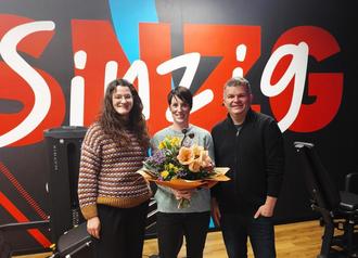 Daniela Başar (Mitte), Gründerin des FITOMAT Women's Club Sinzig, freute sich über die Glückwünsche von Maike Mostert (l.) und Oliver Göbel (r.) von der Stadt Sinzig.