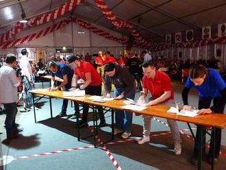 WESTUM. DG. Am vergangenen Wochenende war es wieder so weit: „Schlag die Möhre“ heißt der beliebte Wettstreit, bei dem Teams aus den einzelnen Stadtteilen in ganz unterschiedlichen Disziplinen bereits seit 2014 gegeneinander antreten. Wegen der Corona-bedingten Pause war es diesmal das 11. Aufeinandertreffen, im rheinischen Fastelovend natürlich eine ganz besondere Zahl. Daniel Kohzer begrüßte die Teams und das zahlreich erschienene närrische Volk. Hierbei wies er darauf hin, dass die Kosten für das Festzelt mit inzwischen 25.000 € diesmal einen Rekordwert erreicht haben. Da Sinzig keine geeignete, ausreichend große Veranstaltungs-Location hat, schlug er -ein wenig süffisant, im Grunde aber sicher durchaus ernst gemeint- vor, dass die Stadt Sinzig doch die Hälfte dieser Kosten übernehmen könne, was mit lautem Beifall aufgenommen wurde. Als Co-Moderatoren fungierten Robin Odenthal und Simone Gasper, die die Instruktionen für die einzelnen Spiele gab. Für so einen Wettstreit braucht es natürlich auch Schiedsrichter: Franz-Hermann Deres, Markus Jüris, Dr. Stephan Schuck und Martin Thormann hatten im Folgenden immer ein waches Auge darauf, dass auch alles mit rechten Dingen zugeht. Um die Stimmung schon etwas anzuheizen, sorgten die Mini-Möhrchen, eine von vier Tanzgruppen der Westumer KG, für den richtigen Einstand. Nach der Vorstellung der Teams zeigten die „Aktiven Möhrchen“, was sie schon draufhaben. Und dann ging es mit den Spielen los. Insgesamt 11 Spiele in drei Blöcken mussten die Teams bewältigen. Hierbei waren ganz unterschiedliche Anforderungen gefragt: Mal ging es um reine Wissensfragen wie zum Beispiel: „Welcher war der dritte James-Bond Film“, oder welches Auto wurde „Schneewittchen-Sarg“ genannt. Dann war körperliche Geschicklichkeit und Gewandtheit gefragt, als man sich komplett um eine Brauereibank drehen musste, ohne dabei den Boden zu berühren. Teamwork war bei „Schnelle Post“ gefragt: Einer faltet, der nächste kuvertiert, Briefmarke drauf, stempeln und schnell in den richtigen Briefkasten zustellen, um nur einige Spiele zu nennen. Natürlich machte auch Sinzigs Prinz Christian I. (Schuldt) mit großem Gefolge dem Murreland seine Aufwartung. Wie nicht anders zu erwarten, bot er dabei wieder eine perfekte Bühnenshow. Nach dem zweiten Spielblock wurde es brasilianisch: In tollen Kostümen fegte eine große Schar Mädels über die Bühne und zeigte atemberaubende Tanzfiguren. Synchronität, tänzerisches Temperament und eine ungeheuer ausdrucksstarke Performance: Man könnte auch einfach sagen: Meninas! Und nach einem schnellen Kostümwechsel ging es noch mal richtig los. Ganz Westum kann wirklich stolz sein auf die vier Tanzgruppen der KG. Das Spektakel neigte sich langsam dem Ende zu. Punktestand vor dem letzten Spiel: Löhndorf 24, Bad Bodendorf 19 und Koisdorf 16. Sinzig und Westum waren etwas abgeschlagen und hätten den Gesamtsieg nicht mehr holen können. Es blieb spannend bis zum Schluss, schließlich holte Westum das letzte Spiel, schob sich mit 21 Punkten noch auf den 2. Platz, und machte damit das Team aus Löhndorf zum Gesamtsieger. Den tänzerischen Abschluss bildeten dann die „Fidelen Möhrchen“ mit einem anmutigen Tänzchen. Ein großer Dank ging abschließend noch an das Bau-, Orga- und Ideenteam. Es ist schon erstaunlich, welche Spiel-Ideen dort entwickelt werden. Das ganze Jahr über wird gesammelt, gebaut, ausprobiert und dann entschieden, welche Spiele am Ende tatsächlich gemacht werden. Zur Siegerehrung kamen noch einmal alle Teams auf die Bühne, ehe den erfolgreichen jubelnden Löhndorfern dann der Siegerpokal überreicht wurde. Es war wieder ein tolles Spektakel. Fastelovend ein klein wenig anders, aber mit viel Stimmung und Freude. Dreimol Westum Alaaf!