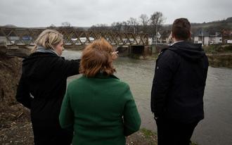 Im Anschluss an das Gespräch fuhren die Abgeordneten weiter nach Heimersheim. Der Ortsteil der Stadt Bad Neuenahr-Ahrweiler wurde von der Flut stark getroffen. Auch eineinhalb Jahre danach ist das noch erkennbar - besonders deutlich an der Bundesstraße, die entlang der Ahr verläuft. Gemeinsam mit dem Bürgermeister der Gemeinde Bad Neuenahr-Ahrweiler, Guido Orthen, dem Leiter und dem stellvertretenden Leiter des Projektbüros Wiederaufbau des Landesbetriebs Mobilität (LBM), Stefan Schmitt sowie Stefan Koch, und zahlreichen Verantwortlichen aus der Region verschafften sich die Abgeordneten von oberhalb des Ortsteiles einen Überblick zu den Schäden. Im Anschluss an die ersten beiden Termine, war es Mützenich wichtig zu betonen: “Ich danke den Menschen, die sich direkt vor Ort im Ahrtal für den Wiederaufbau einsetzen. Es ist sehr beeindruckend zu sehen, was hier geleistet wird.”