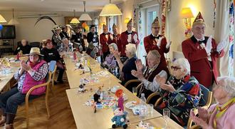 Die Bewohnerinnen und Bewohner des Betreuten Wohnens „Weißes Ross“ waren dankbar über den Besuch der Narrenschar und bedachten die Tollitäten bei Ausmarsch mit tosendem Applaus.