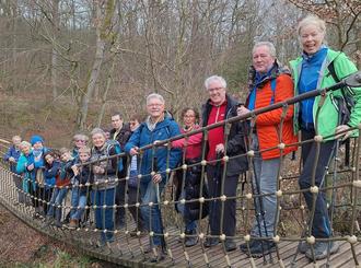 REMAGEN/BINGEN. Der Eifelverein Remagen hat sich für dieses Jahr den Unesco Welterbesteig Oberes Mittelrheintal von Bingen bis Koblenz in mehreren Etappen vorgenommen. Hierzu startete die Wandergruppe mit 17 Personen zur ersten Etappe von Bingen nach Trechtingshausen über eine Strecke von 12 km vom Bahnhof Bingen Hbf (Bingerbrück) entlang des ehemaligen Landesgartenschaugelände zur Querung der Bahngleise und B9. Ab hier ging es über einen durch Wildschweine stark durchgewühlten Serpentinenanstieg auf die Höhe des Rheintal. Vom Aussichtspunkt Prinzenkopf hatte die Gruppe einem herrlichen Blick auf die Nahemündung mit der Stadt Bingen, sowie die Burgruine Ehrenfels und im Rhein auf den Mäuseturm. Weiter ging die Wanderung durch den Bingener Wald zum Ende der Kreuzbachklamm und von hier oberhalb des Forsthauses Heiligkreuz weiter über eine Hängebrücke zum Ausflugslokal Schweizer Haus. Ab hier ging es an der Hangkante entlang mit Blick aufs Bingener Loch und Assmannshausen hinab zur Burg Rheinstein. Ab hier wanderte die Gruppe auf einem Pfad Richtung Morgenbachtal und entlang der Burg Reichenstein zum Zielort Trechtingshausen. Alle waren begeistert von der erlebnisreichen Streckenführung mit schönem Blick ins Rheintal.