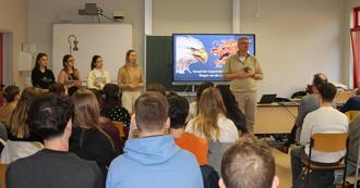 Zwei Schulstunden lang hätte man eine Stecknadel fallen hören können - so gebannt lauschten die 54 Schüler der MSS 13 den Erzählungen von Elmar Theveßen, Leiter des ZDF-Studios Washington, der auf Einladung von Studiendirektor Christian Grosscurth an die Heinzenwies gekommen war.