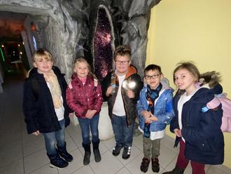 Am 14.02.23 erlebten 7 Kinder der Entdecker-AG unserer Schule einen tollen Vormittag in der Edelstein-Erlebniswelt in Idar-Oberstein. Die ausgiebige Erkundungstour durch die Erlebniswelt, in der sowohl über Edelsteine viel gelernt als auch unterschiedlichste Edelsteine entdeckt werden konnte, bereitete allen Kindern große Freude. Der Besuch der eigenen Schürfstelle stellte für die Schülerinnen und Schüler das Highlight des Tages dar, in welcher die kleinen Entdecker mit einer Schaufel selbst nach eigenen Edelsteinen graben durften. Nach einem gelungen Vormittag ganz im Sinne unserer kleinen Entdecker ging es erschöpft aber glücklich zurück in die Schule.