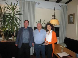 1. Vorsitzender Wilfried Feil (mitte) verleiht goldene Ehrennadel an Hans-Joachim Billert (links) und Karla Dumke-Henn (rechts)