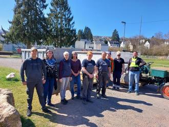 Zwanzig Helferinnen und Helfer aus Tiefenstein und Idar schwärmten am Samstagmorgen, dem 5.4., im Rahmen des vom Verschönerungsverein Tiefenstein organisierten Dreck-weg Tag in Tiefenstein nach Einteilung durch Matthias Forster aus, um den Stadtteil wieder "sauber" zu bekommen. Ein Teil der Müllsammler stellte sich zum Abschluß vor der gefüllten Mulde zu einem Erinnerungsfoto.
