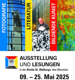 Bereits zum vierten Mal präsentiert sich der Kunstverein in der Kirche St. Walburga mit Beteiligung der Sparten Bildende Kunst, Fotografie sowie der Autorengruppe Nahe.