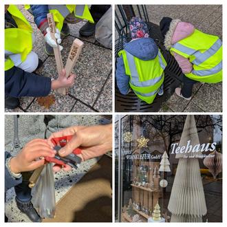 Mit Begeisterung haben sie auch bei einem zweiten Besuch die „Abfall-Sammelaktion“ durch die Fußgängerzone durchgeführt. Ausgestattet mit Handschuhen, Warnwesten und Holzgreifern wurde gemeinsam alles aufgelesen, was nicht auf die Straße gehört: Plastikschnipseln, Zigarettenfiltern, Taschentüchern, Verpackungen und Glasscherben. Die Kinder wunderten sich, wie viel Abfall auf dem Boden liegt und warum der Abfall nicht in dem dafür vorgesehenen Behälter geworfen wird.