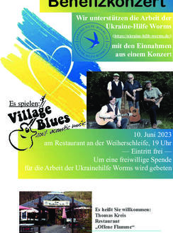 Bereits mehrfach wurden regional gesammelte Hilfsgüter nach Worms verbracht, von wo die dort ansässige Ukraine-Hilfe immer wieder Transporte in die Krisenregion vornimmt. Nun wird gerade eine zusätzliche Aktion zur Unterstützung der unter den Kriegszuständen leidenden Bevölkerung organisiert: Ein Benefiz-Konzert mit Rock- und Blues-Musik. Dazu konnte Village-Blues gewonnen werden, die auf die Hälfte ihrer sonst üblichen Gage verzichten und am 10.06. ab 19 Uhr an der Weiherschleife in Tiefenstein für etwa zwei Stunden aufspielen werden. Der Eintritt dazu ist frei, die Organisatoren bitten stattdessen um eine Spende.
