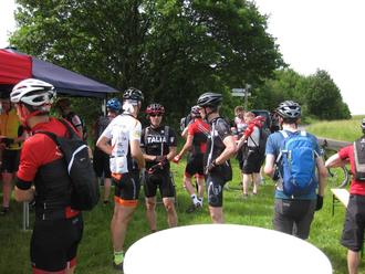 Den ganzen Tag über sind Kontrollfahrer des RSC Blitz (gut erkennbar am knallgelbroten „Biene Maja“-Trikot) auf der Strecke unterwegs, schauen nach dem Rechten und helfen bei Pannen. Mehr als 200 Liter isotonische Getränke, kistenweise Bananen und Waffeln werden an diesem Tag ausgegeben. Aus Umweltgründen verzichtet der Blitz an den Verpflegungsstellen (und im Ziel sowieso) auf Plastikbecher – deshalb sollte alle Teilnehmer Radflaschen bereithalten.