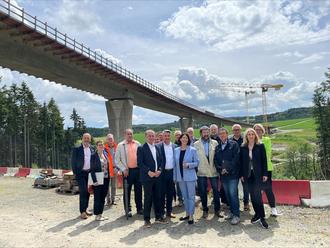 An der Brückenbaustelle bei Rhaunen, einem Teil der Hunsrückspange, traf sich die rheinland-pfälzische Verkehrs- und Wirtschaftsministerin Daniela Schmitt mit Vertretern aus Wirtschaft, Politik, Verbänden und dem LBM. Mit der Hunsrückspange soll eine leistungsfähige Verbindung zwischen Naheraum und Hunsrück geschaffen werden. Die IHK Koblenz setzt sich gemeinsam mit der regionalen Verkehrsinitiative Viscon bereits seit einigen Jahren für den Ausbau dieses wichtigen Verkehrsprojekts ein.