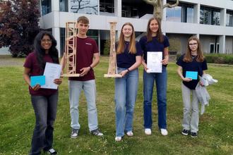 Die sechs Neuntklässler Celine Kirschberger, Raneka Rajalingam, Constantin Vogt, Amelie Bunn, Lotta Schmidt und Lea Ziora der diesjährigen Begabtenförderungsgruppe des Gymnasiums an der Heinzenwies von OStR‘ Christine Fell nahmen in zwei Gruppen am Schülerwettbewerb „Junior.ING“ unter dem Motto „Turm – hoch hinaus“ der Ingenieurkammer RLP in der Altersklasse 2 mit ihren selbst entworfenen und gebauten Turm-Modellen teil. Am vergangenen Freitag machte sich die Gruppe auf nach Mainz