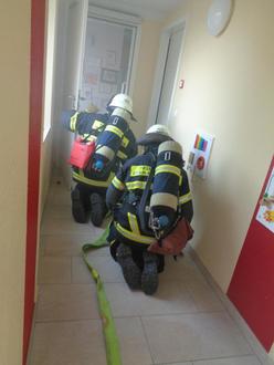 In den Fluren des verwinkelten Gebäudes arbeiteten sich die Feuerwehrfrauen und -männer auf den Knien voran.