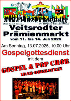Der Gospel & Pop Chor Idar-Oberstein ist in diesem Jahr das erste Mal dabei! Und nach dem Gottesdienst gibt es noch ein paar Poptitel! Der Chor freut sich auf Euch!