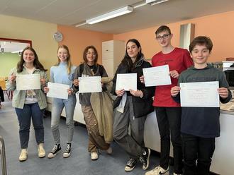 Die offiziellen DELF-Zertifikate wurden nun den Schülerinnen und Schülern im Rahmen einer kleinen Feier in der Schulküche überreicht. Beim Crêpesbacken und - essen hat die kleine Gruppe zusammen mit den Schülerinnen und Schülern der diesjährigen DELF-AG sich nochmal an die Prüfung erinnert und sich ausgelassen darüber ausgetauscht. Am Ende wurden den Schülerinnen und Schülern die DELF-Zertifikate von Lehrerin Anne Neelsen überreicht, die sie für die guten Ergebnisse sehr lobte.