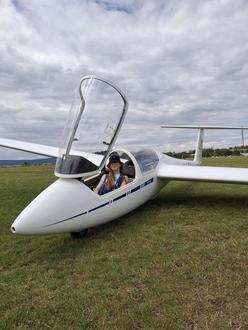 Alleine im Segelflugzeug, die Füße auf den Pedalen, die Hand am Steuerknüppel, voller Konzentration startete Marienne das Segelflugzeug. „Ich war mächtig aufgeregt und mein Herz pochte. Doch als das Windenseil nach dem Start ab war, überwiegte das pure Glücksgefühl“, so Marienne nach ihren Flügen.