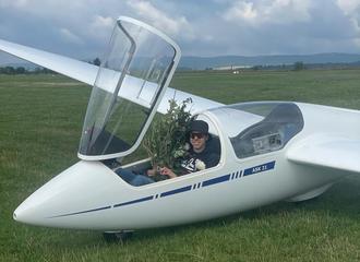 Mittlerweile stehen 70 Übungsflüge mit Fluglehrer in seinem Flugbuch und die Fluglehrer im Aero-Club Idar-Oberstein waren der Meinung: „Jetzt ist er bereit für seine ersten Runden alleine.“ Souverän meisterte er die erste Hürde auf dem Weg zum Segelflugschein.