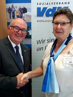 Landesverbandsvorsitzender Willi Jäger gratuliert der wiedergewählten Kreisverbandsvorsitzenden Heidi Schneider