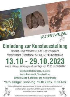 Der Verein der Heimat und Wanderfreunde Göttschied e.V. flädt zur ersten Bilder- und Tonplastiken-Ausstellung in das Vereinsheim in Göttschied ein.