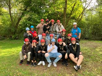 Zum Start ins neue Schuljahr haben alle Klassen der Berufsfachschule I sowie die Klassen BVJ HWGP 23 und BVJHOGO 23 des Berufsvorbereitungsjahres in den ersten Schulwochen ein spannendes Teamtraining im Klettergarten des Idarer Turnvereins absolviert. Begleitet wurde dieses Training durch die jeweiligen Klassenlehrer sowie zertifizierte Hochseilgartentrainer des Idarer TV. Wie all die Jahre zuvor ist Fachpraxislehrerin Britta Pfeiffer für die Organisation dieses aktiven Tages verantwortlich. Zu Beginn wurden die Schüler in die Sicherungstechnik und die Kletterausrüstung eingewiesen. Die Schüler merkten schnell, dass Miteinander gefragt ist und dass sie ihre Komfortzone überschreiten müssen, um erfolgreich sein zu können. Denn nur durch Teamarbeit, gegenseitiges Vertrauen, gemeinsame Strategien und die persönlichen Stärken aller konnten die aufregenden und anstrengenden Hindernisse gemeistert werden – ein großartiges Motto für das gemeinsame Schuljahr!