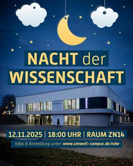 Am Mittwoch, 12.11.2025, veranstaltet der Umwelt-Campus Birkenfeld ab 18:00 Uhr die Nacht der Wissenschaft im großen Vorlesungssaal ZN014.