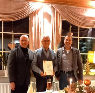Bei der Jahresabschlussfeier der BDB-Bezirksgruppe Idar-Oberstein wurde Dipl.-Ing. Wolfgang Lutz für seine 25-jährige Mitgliedschaft ausgezeichnet. Der BDB-Landesvorsitzende Oliver G. Kleiner würdigte in seiner Laudatio das Engagement und die besonderen Verdienste des Vollmersbachers im Bund Deutscher Baumeister, Architekten und Ingenieure. Oliver Hahn, BG-Vorsitzender in Idar-Oberstein, schloss sich diesen Glückwünschen an und überreichte dem Jubilar ein Buchpräsent.