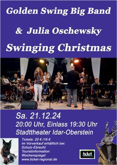 Erleben Sie die legendäre Golden Swing Big Band mit Julia Oschewsky live! Die Golden Swing Big Band blickt auf mehr als vierzig Jahre Bandgeschichte zurück. Sie ist seit 2009 Kulturpreisträger der Stadt Idar-Oberstein. Auf ihrem Weg hat sie Stars wie Bill Ramsey, Silvia Droste und Ron Williams begleitet und tauchen Sie nun ein in die Welt des Swing, Latin, Rock und Pop, wenn die Golden Swing Big Band zusammen mit der charismatischen Sängerin Julia Oschewsky die Bühne erobert. Sie präsentieren eine breite Palette von Weihnachtsklassikern und zeitlose Melodien in ihrem einzigartigen jazzigen Stil.