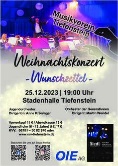 Nur noch wenige Tage bis zum Jahreshöhepunkt beim Musikverein Tiefenstein. Am ersten Weihnachtsfeiertag, dem 25. Dezember 2023 um 19:00 Uhr beginnt das diesjährige Weihnachtskonzert.