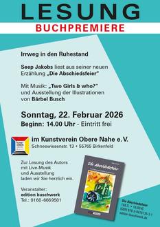 Seep Jakobs liest aus seiner neuen Erzählung „Die Abschiedsfeier“, eine Neuerscheinung der edition buschwerk, illustriert von Bärbel Busch.