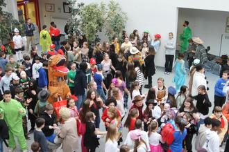 Ein riesiges braunes, aufblasbares Ungeheuer, das an Nessie aus dem schottischen Loch Ness erinnerte, tummelte sich unter den vielen bunt kostümierten Karnevalisten der Heinzenwies und feierte am 07.02. in der 5. und 6. Stunde die Faschingsparty mit, die die SV und die Verbindungslehrer Christine Heinen und Florian Schinz organisiert hatten. Für die 5. bis 8. Klassen gab es in der mit Girlanden und Luftballons geschmückten Heinzenwies-Aula gute Stimmung, Spiele und fröhliche Faschingsschlager. Neben dem Seeungeheuer war auch eine Riesenente unterwegs. Bären, Clowns, Feen, Cowboys und Tiger tanzten und feierten in Vorfreude auf die kommenden tollen Tage. Die jungen Heinzenwieslerinnen und Heinzenwiesler hatten sich viele fantasievolle Kostüme ausgedacht – Hauptsache bunt. Schade, dass die Party nach zwei Stunden zu Ende war!
