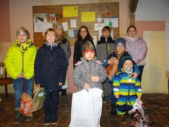 Ein Teil der Kinder nach erfolgreicher Suche bei der Geschenkübergabe (Foto: Privat).