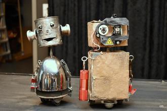 Upcycling trifft High-Tech: Adam und sein Roboterfreund Ed (Fotos: Carl Münzel).