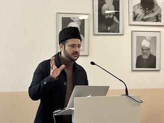 Die Ahmadiyya Muslim Jamaat lud am 28.02.2024 zu einem interreligiösen Vortrag in die Hamd-Moschee ein. Bei dem Vortrag ging es um die islamische Perspektive auf Jesus. Der islamische Theologe und Imam der Ahmadiyya Muslim Jamaat, Tariq Ahmad Zafar, der zurzeit als Dozent am Imam Ausbildungsinstitut im hessischen Riedstadt tätig ist, ging bei seinem Vortrag u.a. auf die christlichen Dogmen wie die Trinität, die Gottessohnschaft und das Konzept der Sühne ein. Ebenso wurde die Geburt und das Ableben von Jesus aus islamischer Sicht beleuchtet. Im Anschluss an den Vortrag fand ein respektvoller Austausch statt, der beim Abendessen weitergeführt wurde.