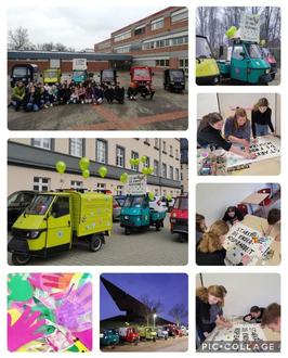 Am 10. Februar fand der jährlich wiederkehrende Tag der Kinderhospizarbeit statt. Auch in Trier wurde dieser Tag besonders gestaltet. Hierzu wurden die Piaggio Ape-Fahrer von der Mosel (Moselbienchen) eingeladen, um für mehr Aufmerksamkeit zu sorgen. Die Kinder der Klasse 6d der IGS Salmtal waren sofort Feuer und Flamme, um für die Dekoration der elf Apen zu sorgen. Über 100 Handabdrücke haben die fleißigen Helferinnen und Helfer zusammen mit ihrer Klassenleitung zur Unterstützung gebastelt, gemalt und gedruckt. Auch die Oberstufe wollte sich beteiligen und so wurde in einer Kleingruppe ein Werbe-Schild mit dem Slogan "Stärkt die Kinderhospizarbeit" kreativ gestaltet. Kinder, die sich für Kinder stark machen und den Rückhalt ihrer Lehrerinnen und Lehrer haben.