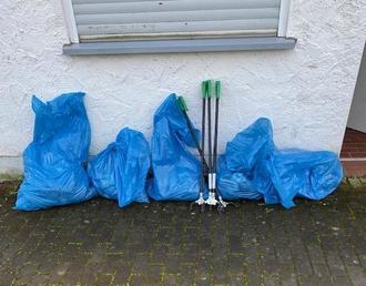 Ortsvorsteher Hoffmann zeigte sich erfreut, dass in Dorf nur 150 Müll Liter gesammelt worden. Darunter leider eine Vielzahl Zigaretten und Zigarettenpackungen (Foto: Gerhard Hoffmann).