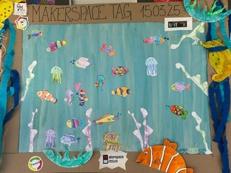 Ein besonderes Highlight war das jüngste Angebot am vergangenen Samstag im Makerspace, bei dem Kinder gemeinsam mit den Mitarbeiterinnen des Makerspace spannende Dinge entdecken und gestalten konnten. Unterstützt von den FamOS-Fachkräften entstand eine Collage eines Aquariums, bei der jedes Kind seinem eigenem Meereswesen einen Platz geben konnte.