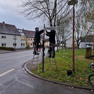 Mit drei Helfern konnten alle Straßennamenschilder im Stadtteil Dorf von Schmutz, Moos und Grünbelag gesäubert werden.