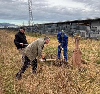 Die fleißigen Helfer bei der Arbeit. Anschließend ist der Platz wieder sauber und zugänglich für die Besucher der Wegekreuze
