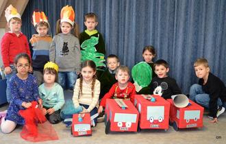 Den Anfang machten die Bausendorfer mit einem tollen Theaterstück über „Fips Feuerwehr“, ein kleines Feuerwehrauto, das Riesenmut beweist und immer wieder als Retter in der Not einspringt, wenn die größeren Autos in der Garage bleiben. Eine Augenweide waren die selbstgebastelten Requisiten, allen voran der Fuhrpark von Feuerwehrautos, die sogar die Namen der Kinder trugen.
