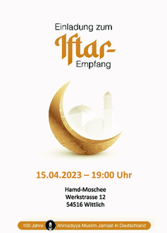 So möchten wir auch in unserem 100. Jubiläumsjahr einen Iftar-Empfang in Wittlich abhalten und Sie dazu herzlich einladen.