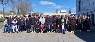 Gruppenfoto mit den Mitgliedern des Earls Barton Uited FC und des SV Wittlich und SV Lüxem vor dem Rathaus (Foto: Emil Haupt).