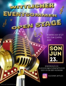 Du bist ein aufstrebender Künstler und möchtest deine Musik vor einem begeisterten Publikum präsentieren? Dann bewirb dich jetzt für einen Auftritt auf der Bühne des Wittlicher Eventsommers am Sonntag, den 23. Juni 2024!