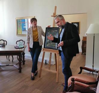 Dr. Stefan Heinz und Frau Diana Lamprecht während der Begutachtung eines Gemäldes (Foto: Christiane Schmitz-Hayer).
