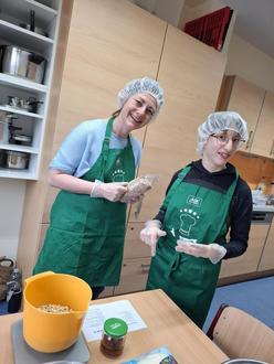 Das Schulcafe-Team der Rosenberg-Schule Bernkastel-Kues hat mit Erfolg am Programm "Zuckerkompass" der AOK teilgenommen. Gemeinsam mit Frau Melanie Busch-Niederprüm lernten die Schüler, wie viel Zucker gut ist und welche Alternativen es gibt. Anschließend wurde dies mit verschiedenen Rezepten praktisch umgesetzt. Von den Ergebnissen profitierte die ganze Schulgemeinschaft. Die Fortbildung hat das Schulcafe-Team weiter für das Thema sensibilisiert, was es jetzt in seiner wöchentlichen Arbeit umsetzen möchte (Foto: Privat).