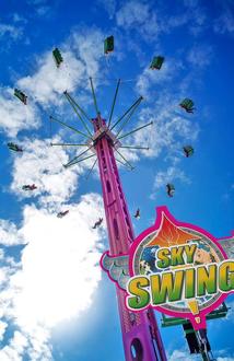 Über den Wolken: Das Kettenkarussell Sky Swing lässt Sie auf schwindelerregende 40 Meter in die Luft steigen und bietet einen Ausblick, der seinesgleichen sucht. Ob im Tandem mit einem Freund oder alleine, der Sky Swing garantiert ein unvergleichliches Gefühl von Freiheit. Steigen Sie ein, lassen Sie sich in die Lüfte tragen und genießen Sie einen atemberaubenden Blick, den nur wenige Fahrgeschäfte bieten können.
