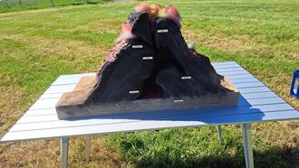 Zudem wurde die Pause genutzt das, vom Makerspace kreierte, Vulkanmodell zu begutachten. Es zeigt im Querschnitt anschaulich die Entstehung eines Vulkans und vermittelt insbesondere Kindern interessantes Wissen zur erdgeschichtlichen Entwicklung.